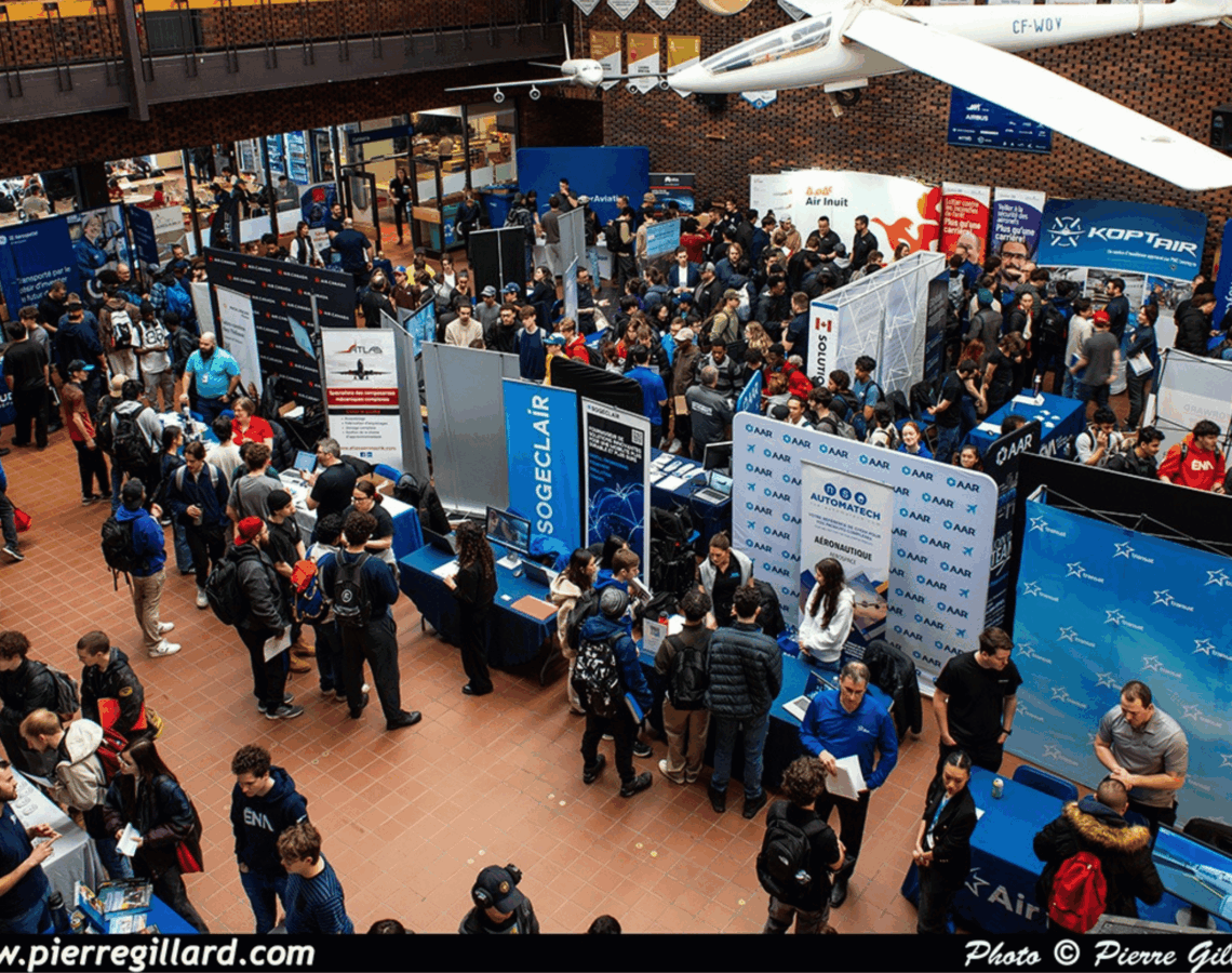La Journée carrière s’est déroulée à l’École nationale d’aérotechnique (ÉNA) et a réuni 48 entreprises du milieu de l’aéro, venus à la rencontre avec des quelques 700 étudiant(e)s ainsi que diplômé(e)s présent(e)s. Des acteurs issus de secteurs variés — maintenance d’aéronefs, fabrication aérospatiale, ingénierie de systèmes, aviation commerciale et technologies de propulsion — étaient au rendez-vous. Cette diversité a mis en lumière toute l’ampleur et la richesse de l’écosystème aérotechnique.