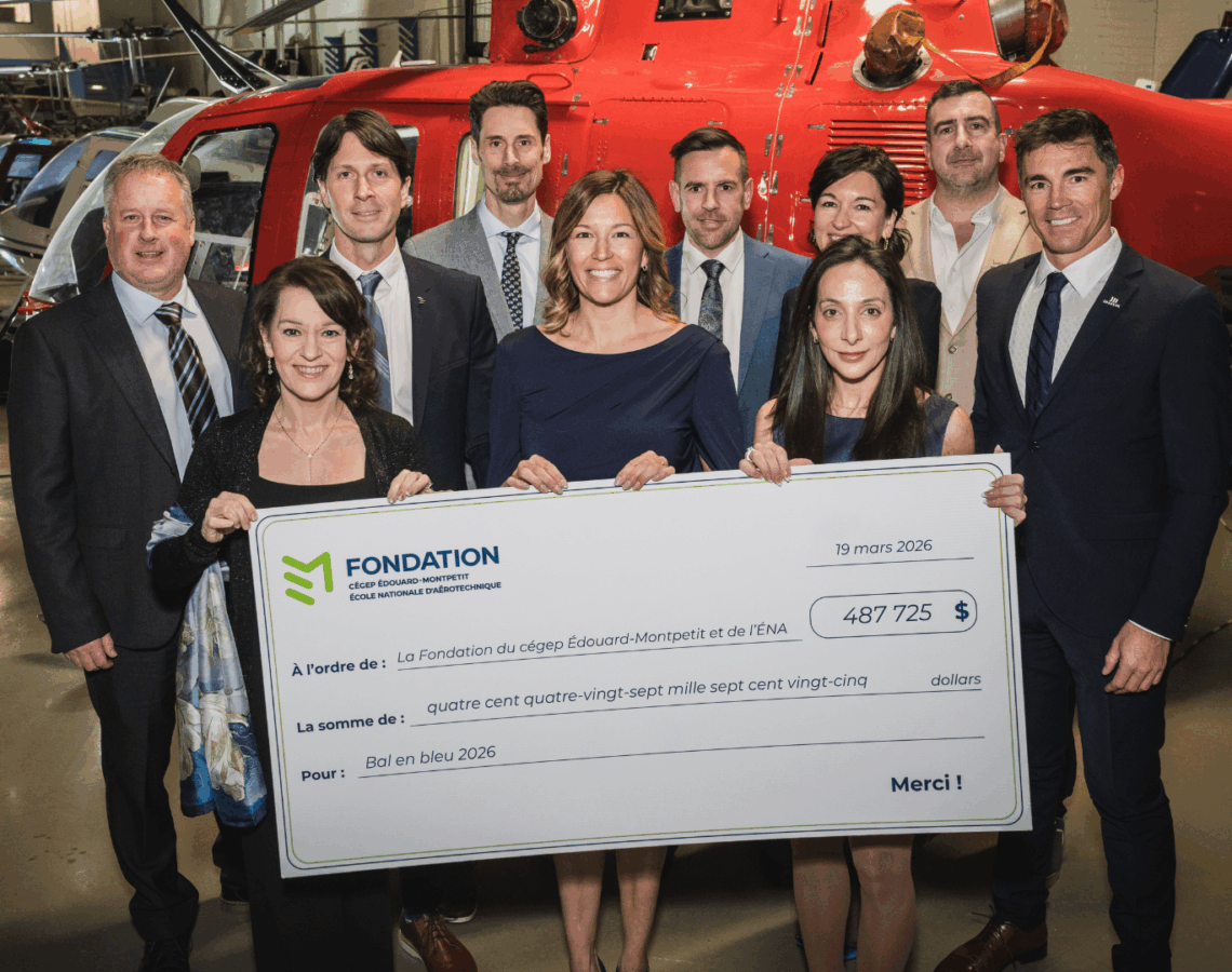 Inspirée de l’univers enchanteur du pays des merveilles, la 20e édition du Bal en bleu de la Fondation du cégep Édouard-Montpetit et de l’École nationale d’aérotechnique (ÉNA), tenue le 19 mars 2026, a permis d’amasser la somme record de 487 725 $ en soutien à la relève en aérospatiale, un montant historique pour la Fondation. Cette mobilisation exceptionnelle permettra d’appuyer la réussite des étudiantes et étudiants de l’ÉNA et de propulser le développement de projets structurants pour l’établissement.